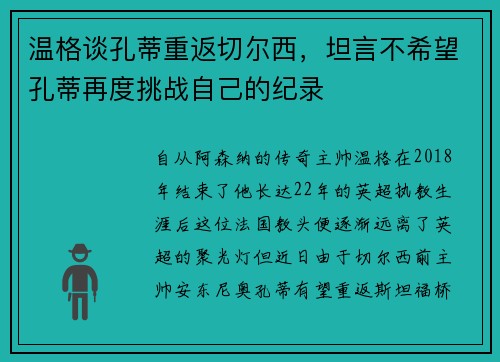 温格谈孔蒂重返切尔西,坦言不希望孔蒂再度挑战自己的纪录