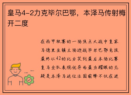 皇马4-2力克毕尔巴鄂,本泽马传射梅开二度